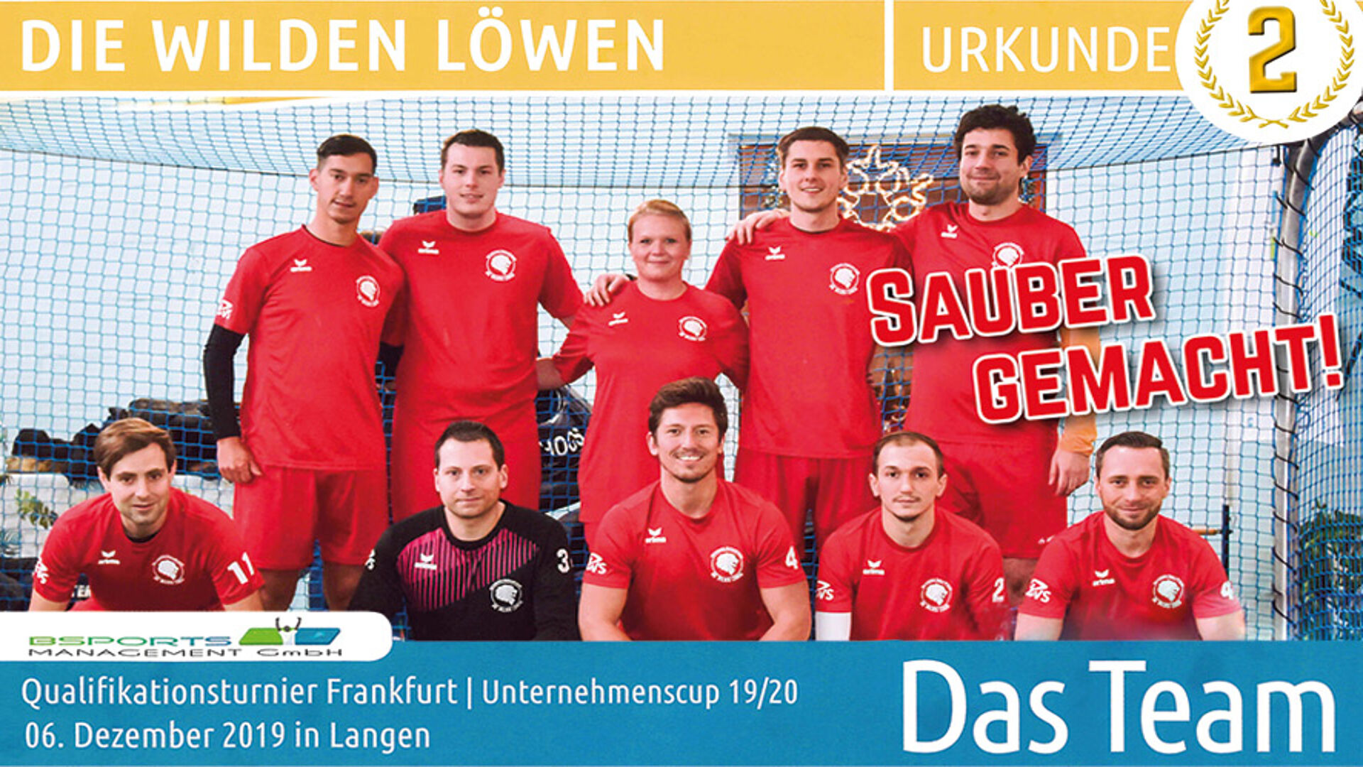 Nach einer Siegesserie und einem Unentschieden mussten sich DIE WILDEN LÖWEN nur der Titelverteidiger-Mannschaft „Intensivpflege Seipt“ geschlagen geben, die im vergangenen Jahr das Bundesfinale in Berlin für sich entscheiden konnte. Unser Team war mit insgesamt neun Spielern und einer Spielerin vor Ort und qualifizierte sich mit einer großartigen Mannschaftsleistung für die nächste Runde. Hier treten dann die vier besten Mannschaften aus Hessen und NRW gegeneinander an. Wir wünschen unserem Team weiterhin viel Erfolg und freuen uns auf das nächste Event am 16. Mai 2020 in Troisdorf.
