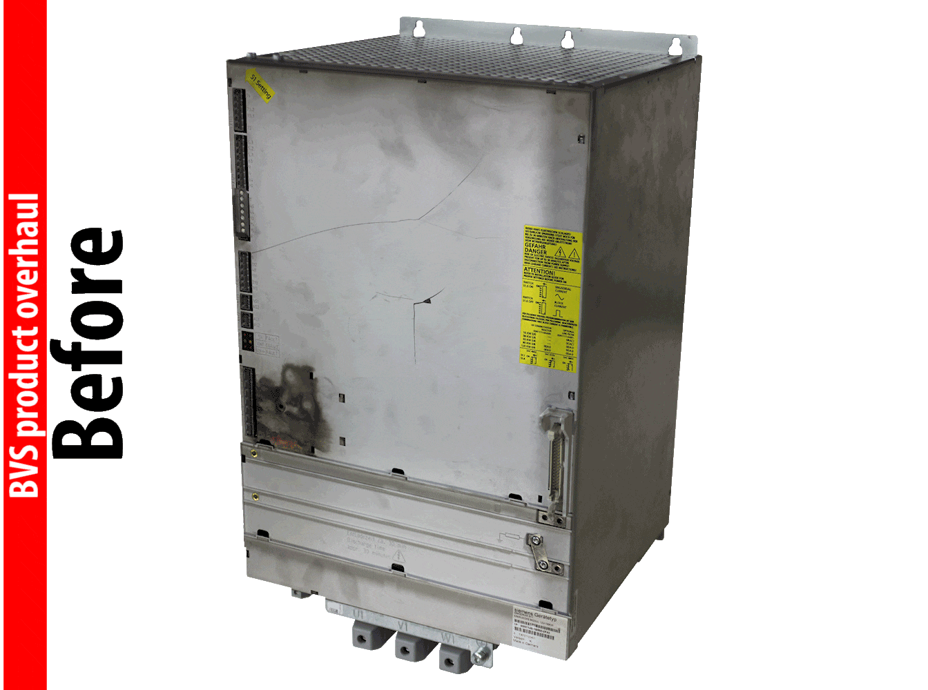 W przypadku wszystkich napraw opieramy się na ściśle zdefiniowanych pakietach remontowych, które odzwierciedlają naszą obietnicę jakości w każdym pojedynczym zespole, jak na przykład pokazany tutaj jako przykład moduł Siemens Simodrive E/R 6SN1145. Oprócz oryginalnych komponentów stosujemy również komponenty ulepszone, jeżeli komponenty oryginalne nie są już dostępne z powodu zaprzestania produkcji. W ten sposób w ramach zarządzania jakością gwarantujemy również niezbędne bezpieczeństwo produktów – zawsze zgodnie z wytycznymi bezpieczeństwa dla każdej naprawy.